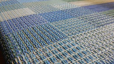 I had to restrain myself when it came to beating the weft, in order to keep it around 20 ppi. I am an inveterate rug weaver and I'm also fond of overshot, both of which require an enthusiastically vigorous beat. As a consequence, I always have to concentrate on holding back when I weave anything lighter -- and lighter, for me, does include thick blankets.